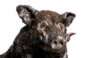 The Wild Boar is half sized and took six months to sculpt. I created a wooden supportive armature: sculpted a wild boar form over this with expanding foam to keep the sculpture light enough to maneuver. Then sculpted the form and detail in clay. The finished sculpture was then carefully transported to a Fine Art Foundry in Essex for expert mould making and casting. The artist proof is a cold cast bronze resin. But the Wild boar can be cast in bronze in the future.
